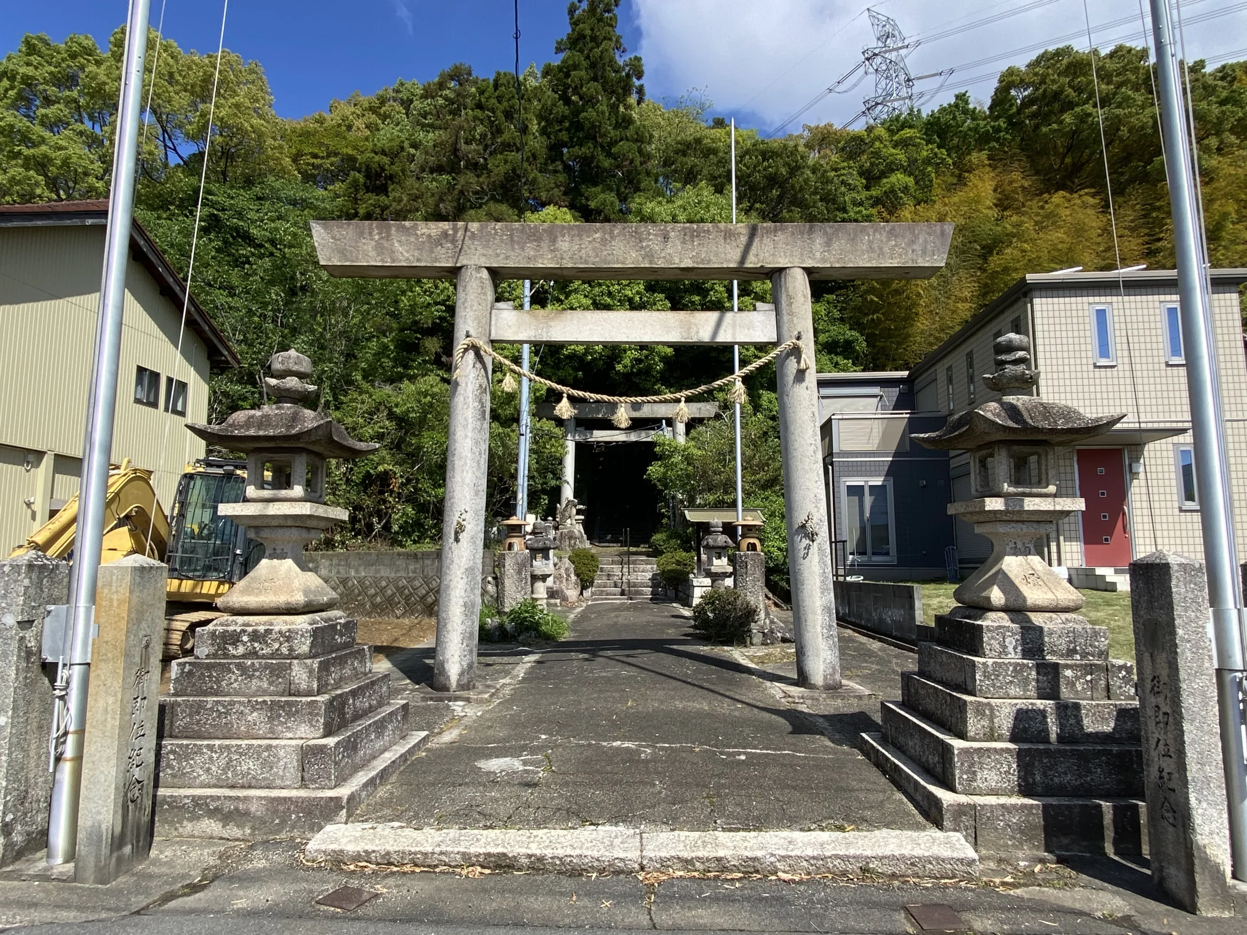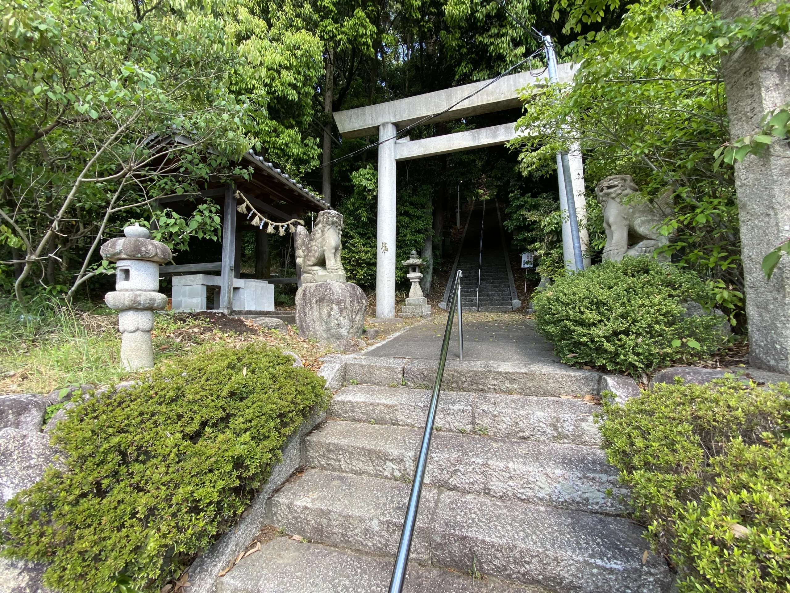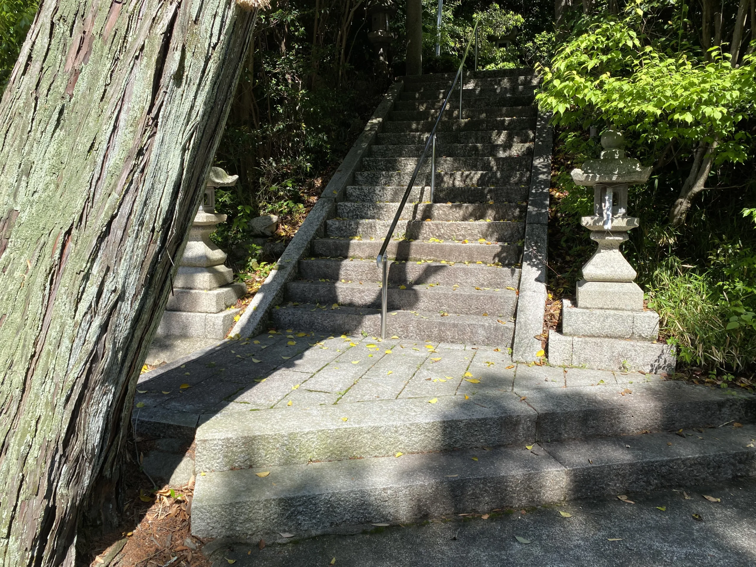 ![]() 駐車場からは急な坂です。 歩きが無理な方は車で社務所前の広場まで行けます。 | ![]() 石段の入り口の2つ目の鳥居です。 石段は67段です。 |
