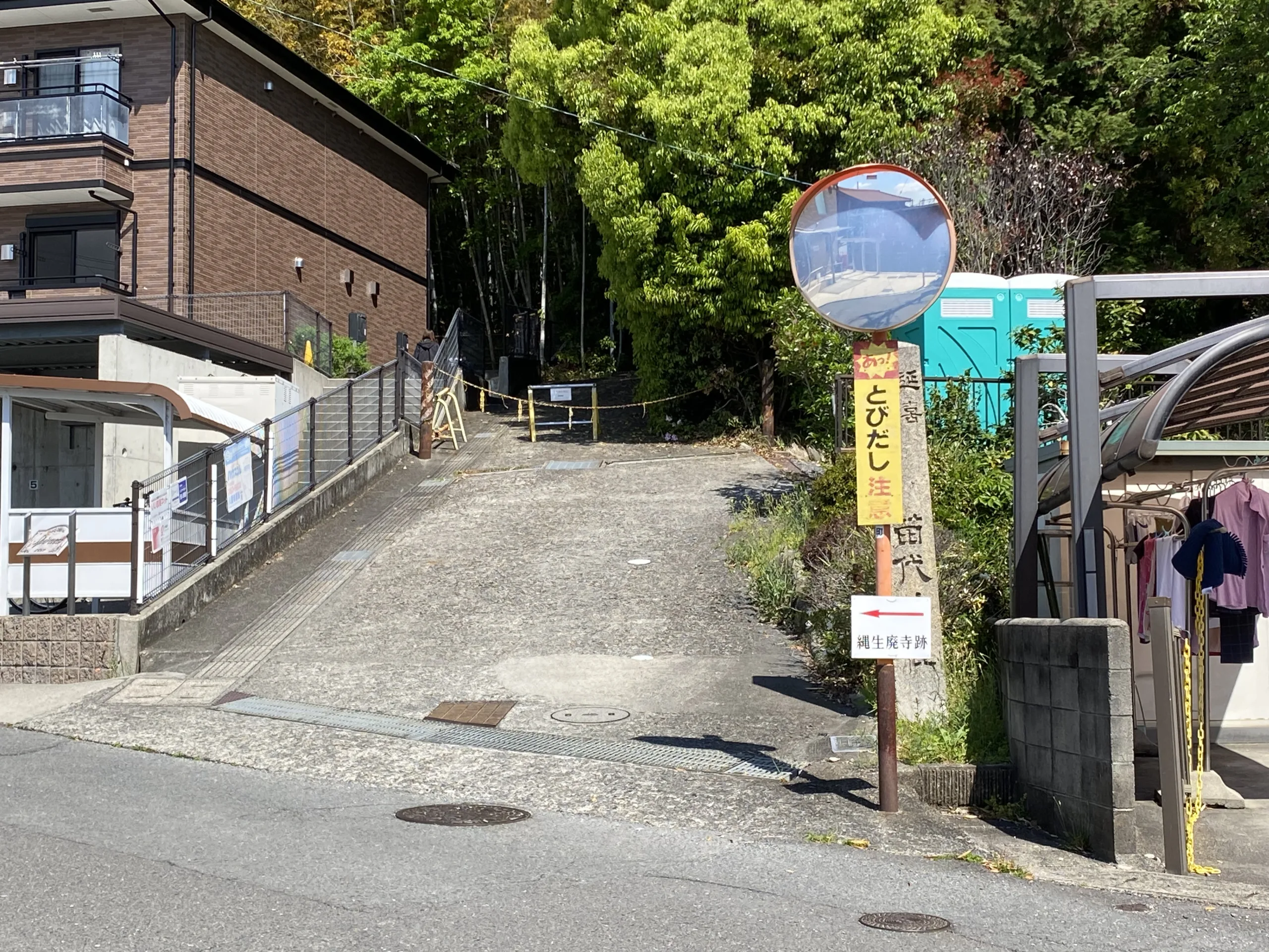 ![]() 左に行けば駐車場です。 | ![]() 右に行けば石段です。 |